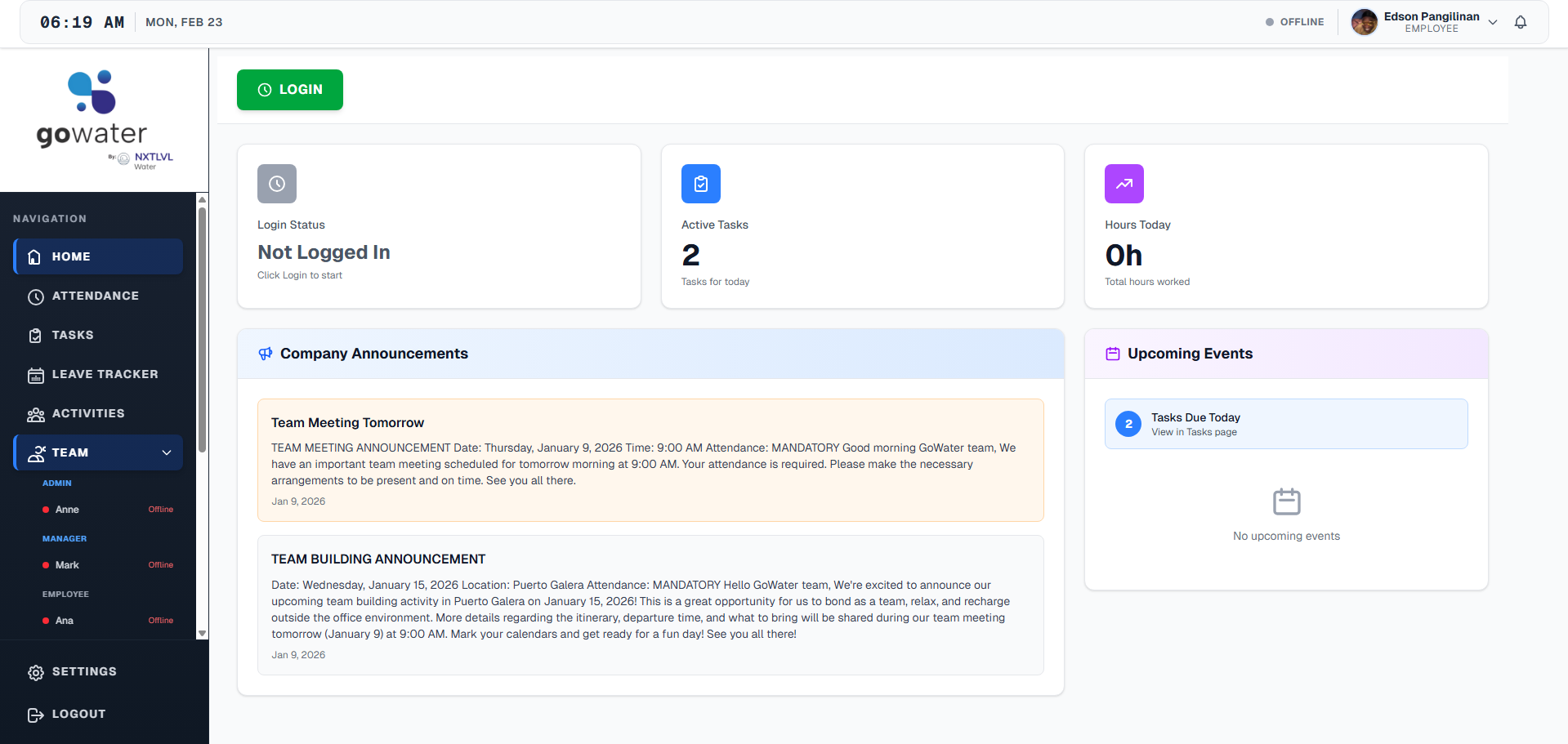 HR portal for NXTLVL Water Technology built with Next.js and Supabase. Manages employee records, attendance, and shift scheduling — the source system the n8n attendance automation pipeline integrates with.